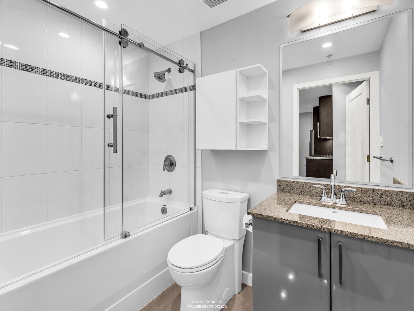 Welcome to THE ONE, a pet friendly concrete building in the heart of Olympic Village. This fantastic 1 bedroom plus flex space offers one of the best layouts you will find! In PRISTINE condition, this unit is better than brand new! It featuring hardwood floors, 9ft ceilings in bdrm/living area, modern finishes including Bosch & Fisher Paykel appliances, gas cooktop, B/I oven & microwave, granite counters, window screens and a 53 sq ft balcony. New Paint throughout as well as new carpeting in bedroom plus B/I in closet organizer. Residents can enjoy premium amenities including a rooftop pool, hot tub, fitness centre, lounge and outdoor garden. Walk to restaurants, coffee shops, shopping amenities and skytrain! Comes with 1 parking, storage locker & bike storage & EV access in building.